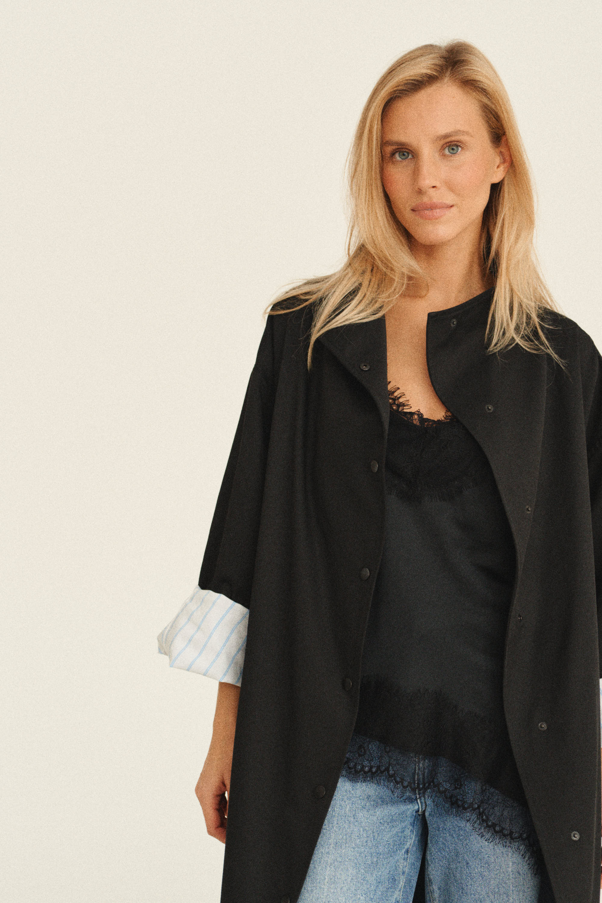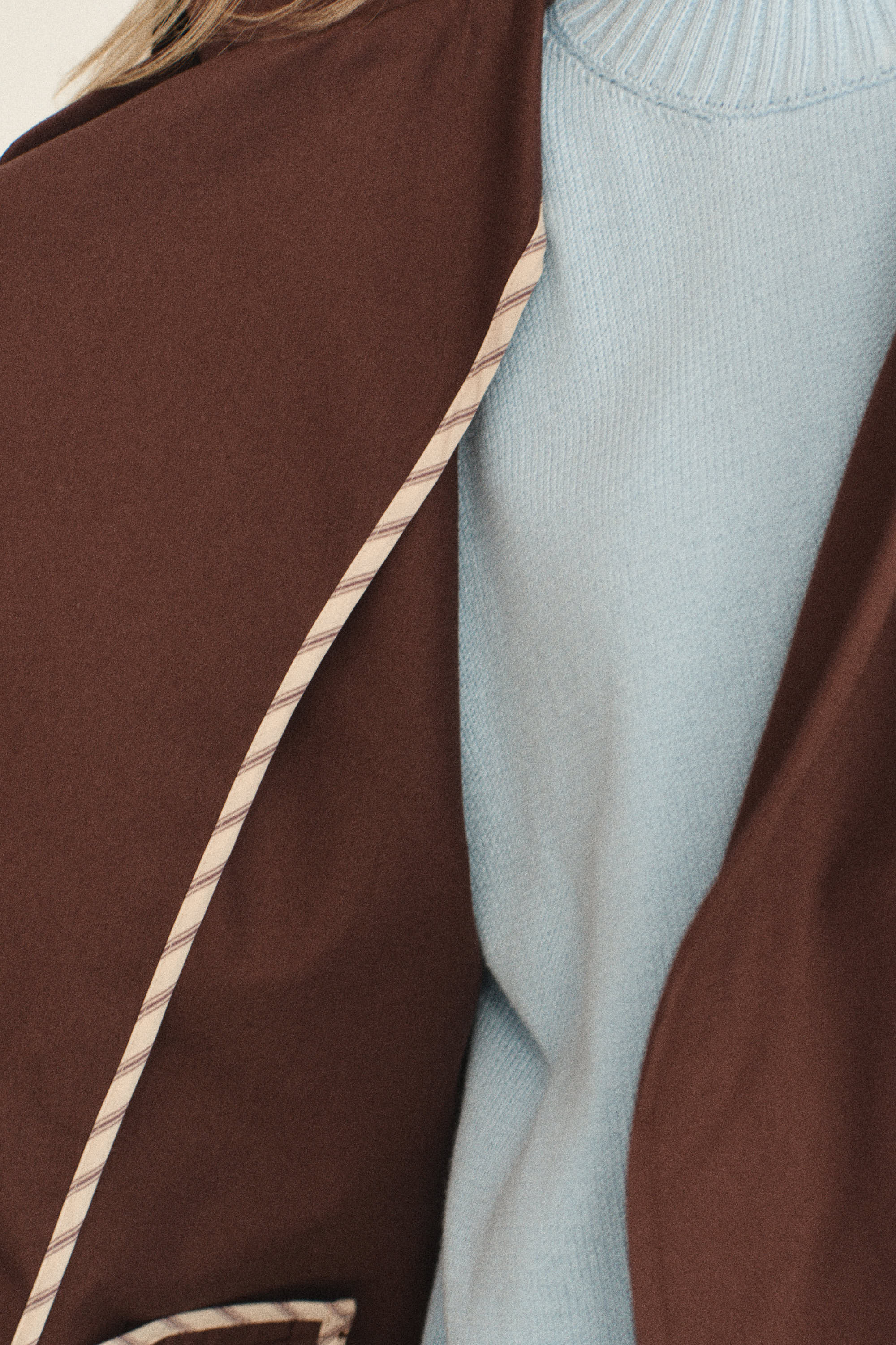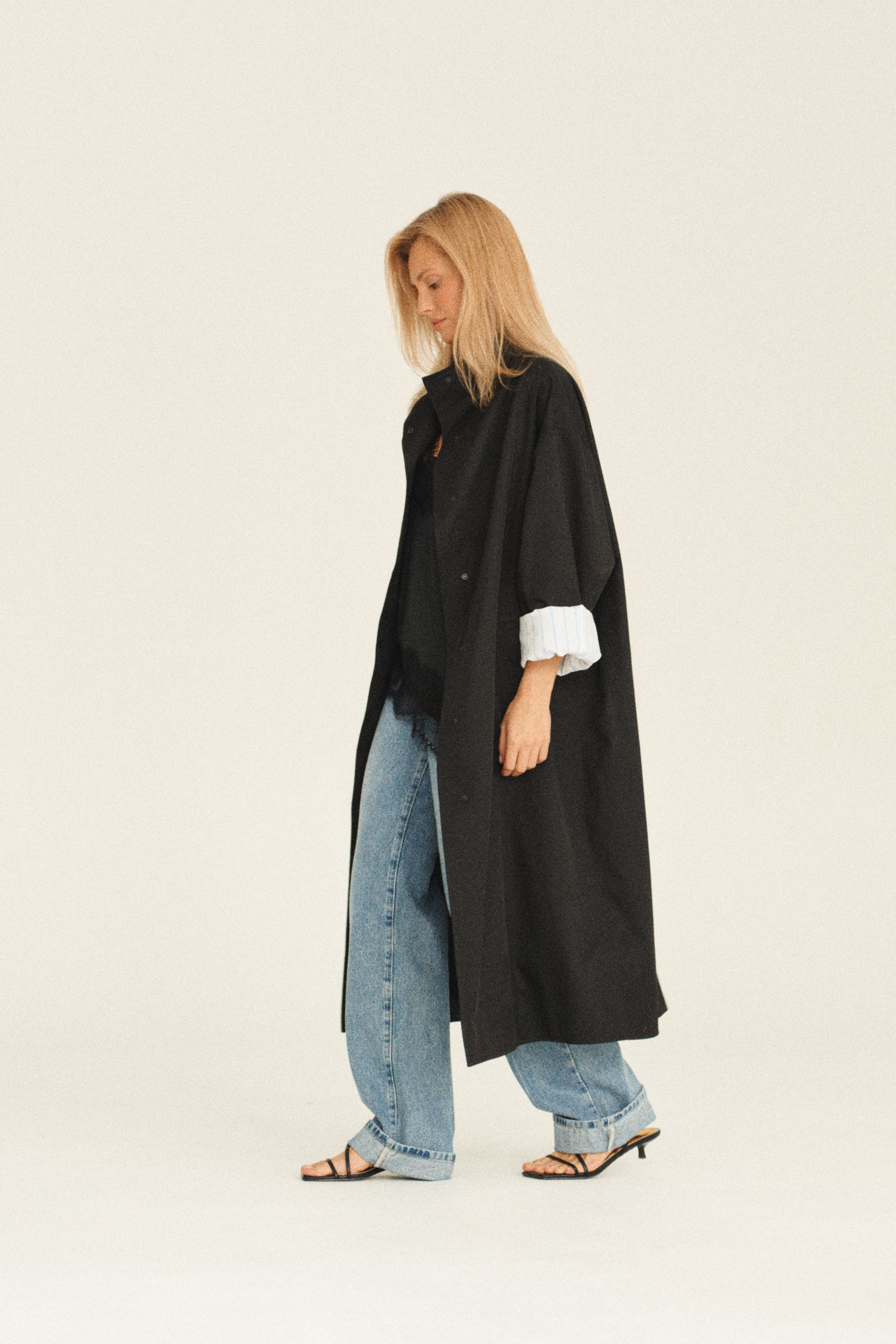 Куртка-тренч выполнена из хлопковой ткани, которая пропитана влаго/ветро защитой. Куртка без подкладки, внутри изделие окантовано контрастной хлопковой тканью, что делает красивый и деликатный акцент. В комплекте идет пояс.
